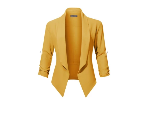 For the women who dresses for comfort and style this blazer is for you. Featuring a draped front, quarter sleeve, and semi-cropped fit at back. Wear with jeans and a tee shirt for a more cute- casual look or layer over a simple day dress for more style and detail.