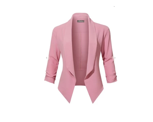For the women who dresses for comfort and style this blazer is for you. Featuring a draped front, quarter sleeve, and semi-cropped fit at back. Wear with jeans and a tee shirt for a more cute- casual look or layer over a simple day dress for more style and detail.