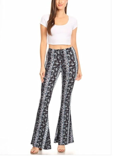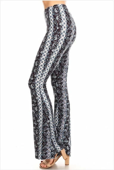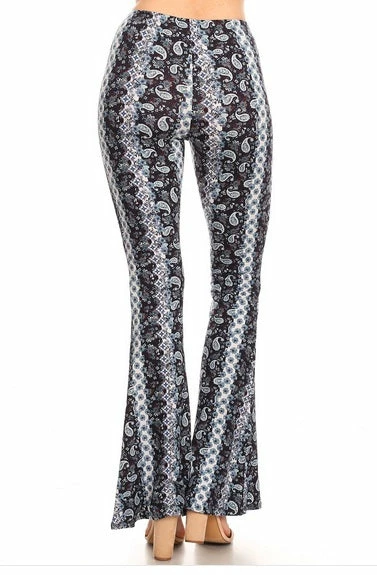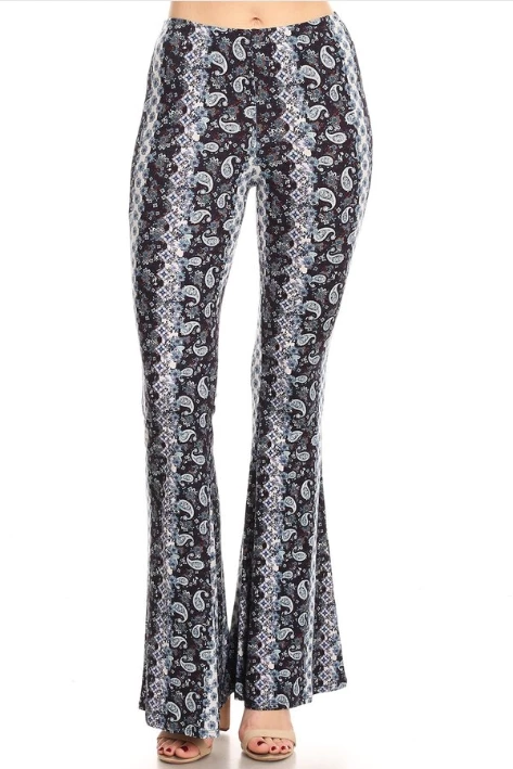 Have legs for days in this paisley, high rise, fitted, bell-bottom pants with an elastic waistband. This comfortable stylish pant is great with