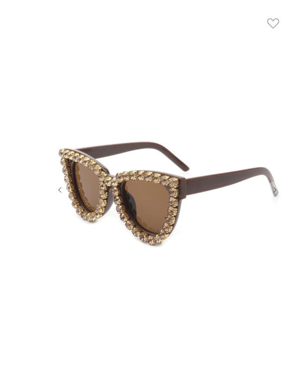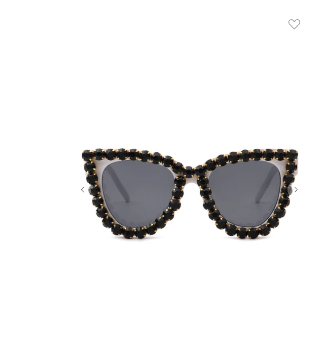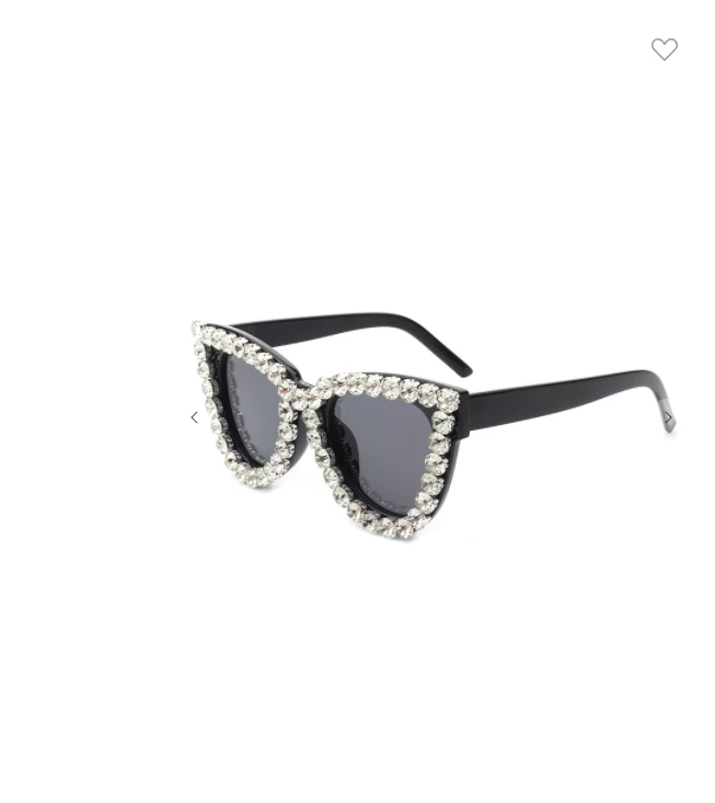 Super stylish cat eye shaped shades featuring a chic rhinestone frame detail with square grey lenses.