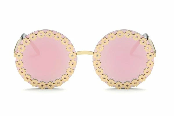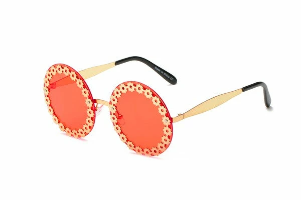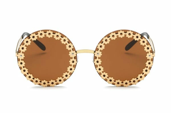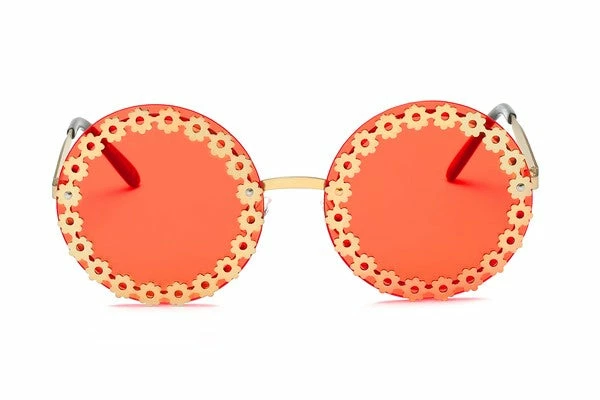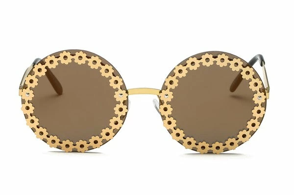 rocking this round retro sunglasses with floral accent