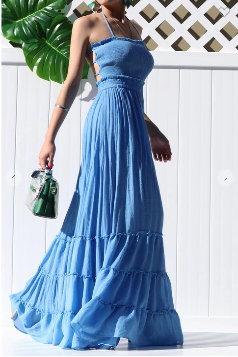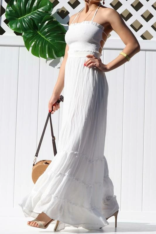You’ll look extra flirty in the Crazy For You Smocked Maxi dress.