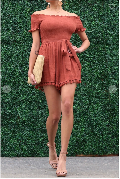 tie waist. Also featuring a fringe detail on the this comfortable stylish romper is