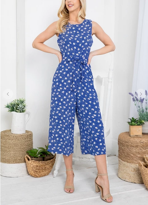 Make a fashion statement in the Vacation Ready Jumpsuit with a tie waist. This comfortable stylish pant is great with