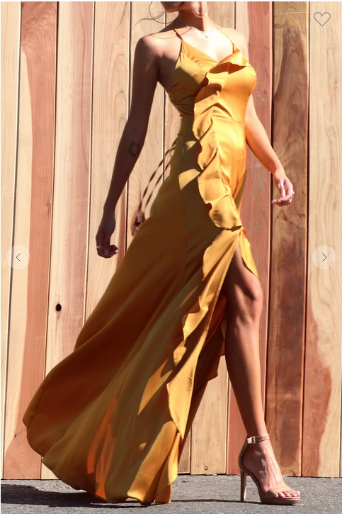 Rise to the occasion in this Satin Series Dress with a stylish slit.