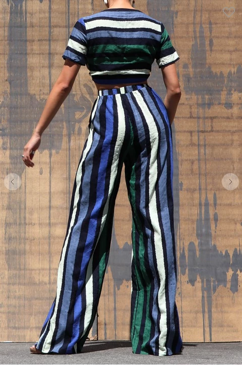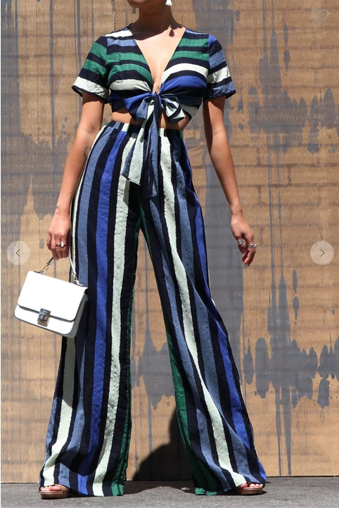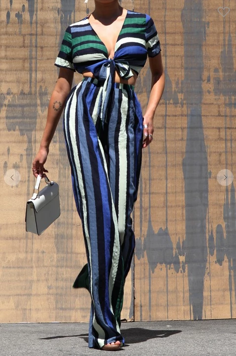 You’re feel fashion forward in this stylish Stripe top with a tie top. This comfortable stylish crop top is great to pair with