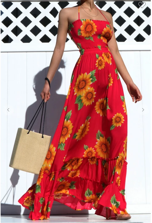 You’ll look extra flirty in the Sunflower Power Smocked Maxi dress.