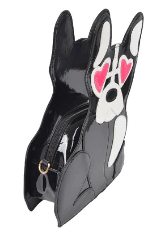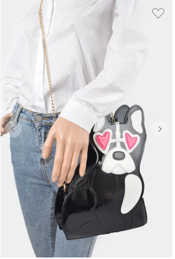 You’re sure to fall in love with with this adorable puppy with heart eyes purse. This is the perfect bag for the dog lovers, it features a removable chain strap and it’s fully lined.