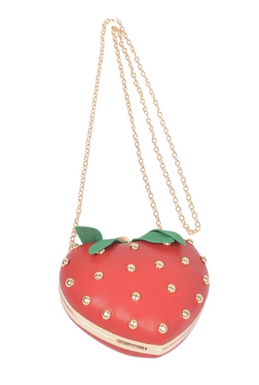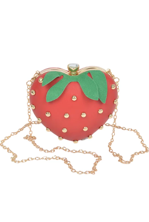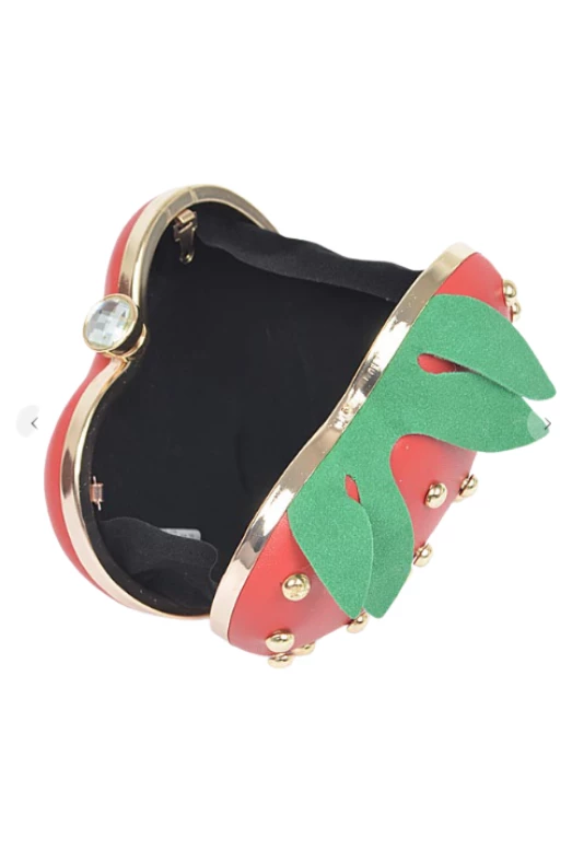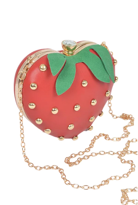 Step up your fashion game with the adorable Strawberry Studded Clutch.