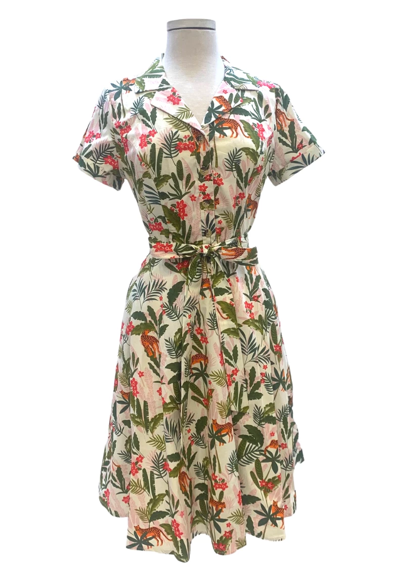 featuring a cute jungle print in a classic pinup style.