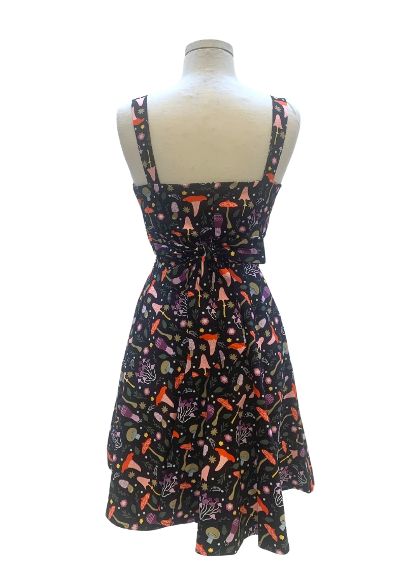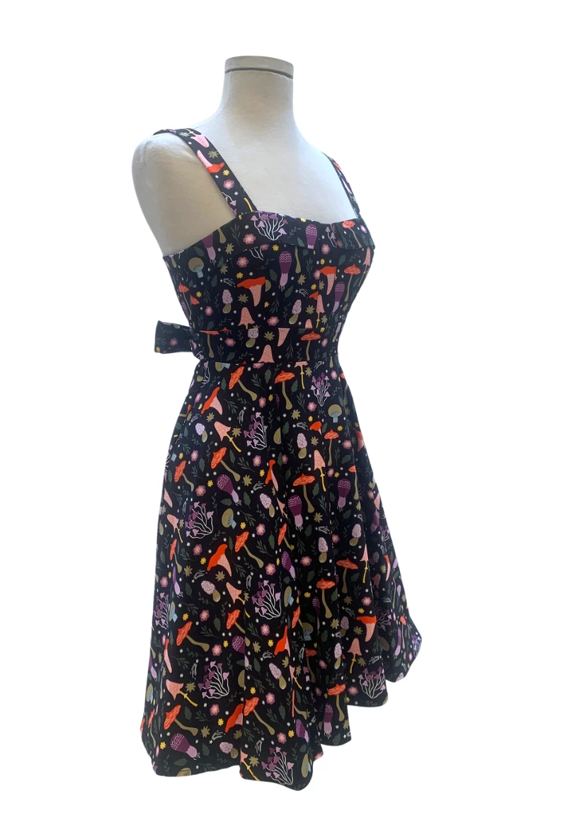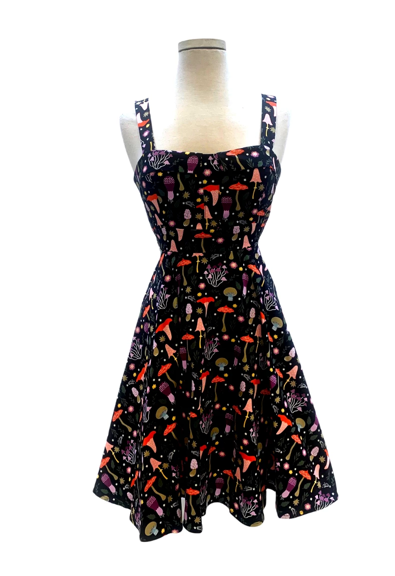 Keep smiling because life is a beautiful thing’ and so is this classic pinup style dress. This cute black mushroom print dress has thick straps for an extra bit of support atop the fitted bodice that culminates into an adorable rounded skirt. The Missy dress ties in the back to fit to all of our beautiful body types. This dress is versatile just like the modern woman – wear it to work or wear it to play!