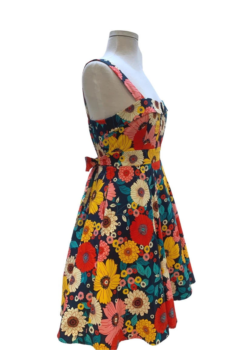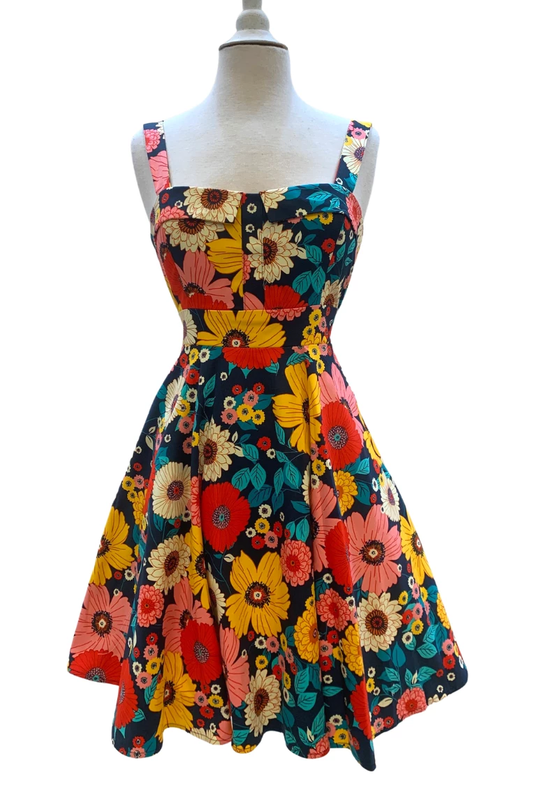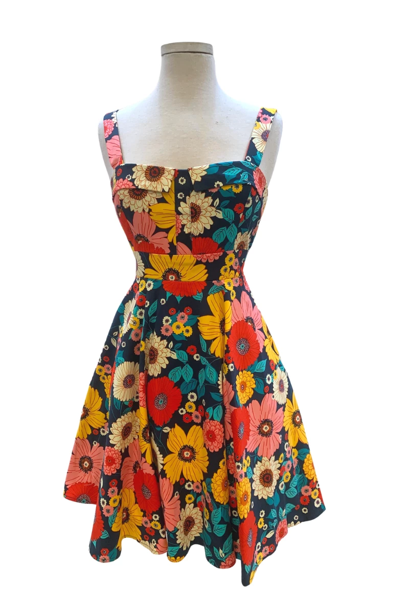 ‘Keep smiling because life is a beautiful thing’ and so is this classic pinup style dress. This cute carnation print dress has thick straps for an extra bit of support atop the fitted bodice that culminates into an adorable rounded skirt. The Marilyn dress ties in the back to fit to all of our beautiful body types. This dress is versatile just like the modern woman – wear it to work or wear it to play!