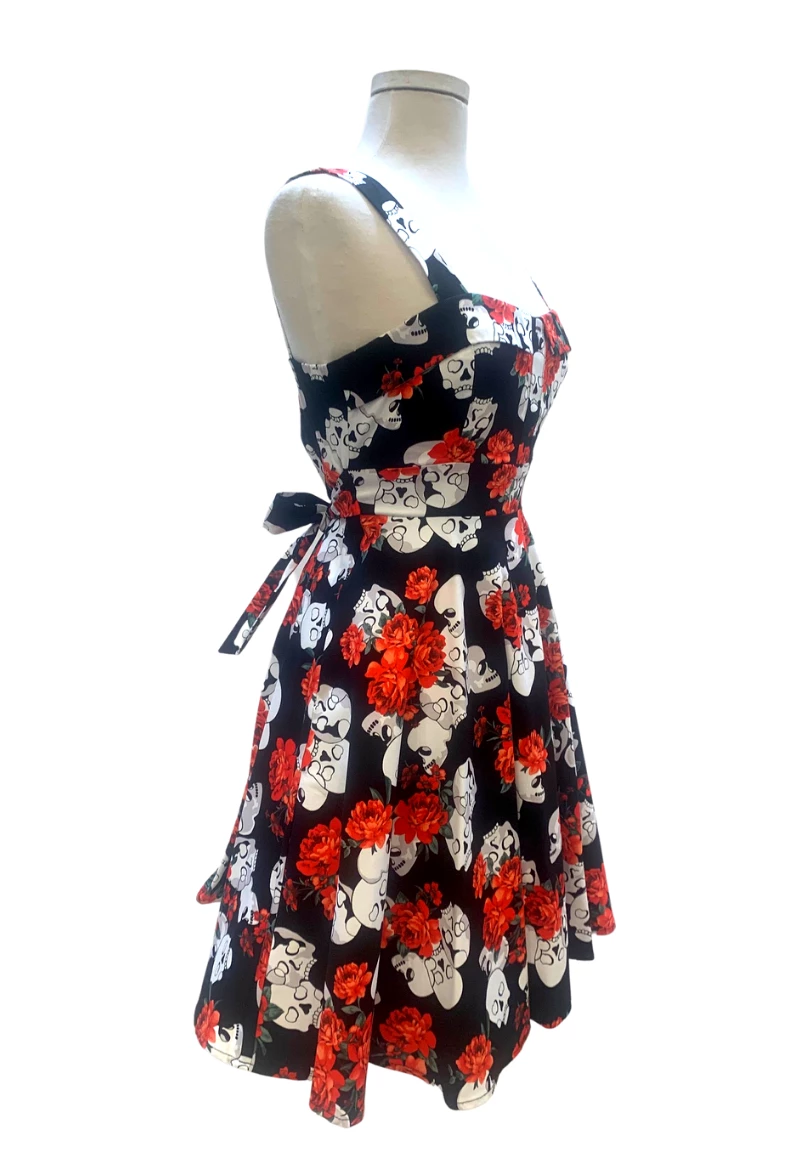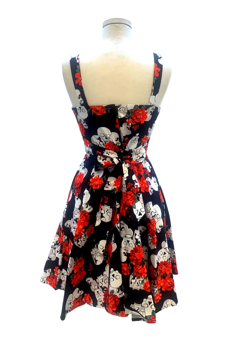 ‘Keep smiling because life is a beautiful thing’ and so is this classic pinup style dress. This cute black and white skull dress has thick straps for an extra bit of support atop the fitted bodice that culminates into an adorable rounded skirt. The Marilyn dress ties in the back to fit to all of our beautiful body types. This dress is versatile just like the modern woman – wear it to work or wear it to play!