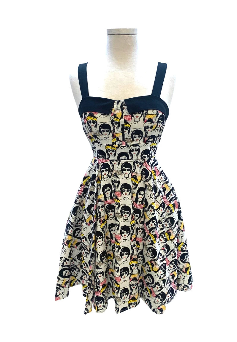 ‘Keep smiling because life is a beautiful thing’ and so is this classic pinup style dress. This cute black and white print dress has thick straps for an extra bit of support atop the fitted bodice that culminates into an adorable rounded skirt. The Marilyn dress ties in the back to fit to all of our beautiful body types. This dress is versatile just like the modern woman – wear it to work or wear it to play!