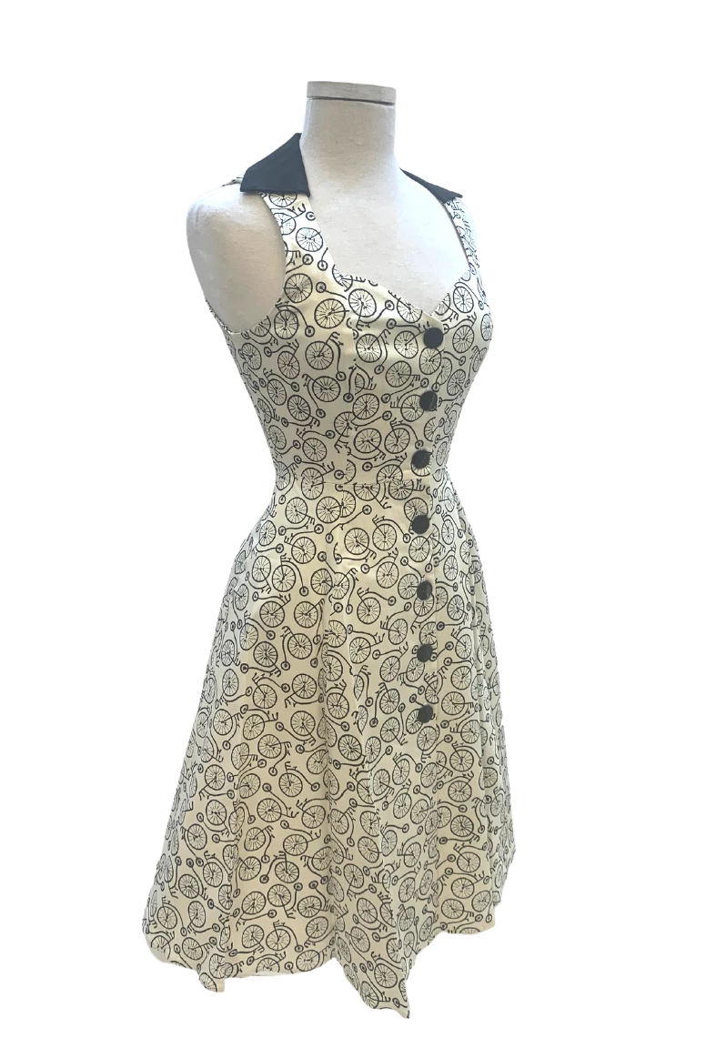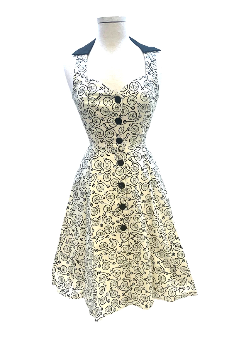 This dress is reminiscent of the famous vintage American look that the great american designer Claire McCardell always featured in her collections. The Claire Dress has thick straps that form into a deep v-neckline and culminates in a full circle skirt.