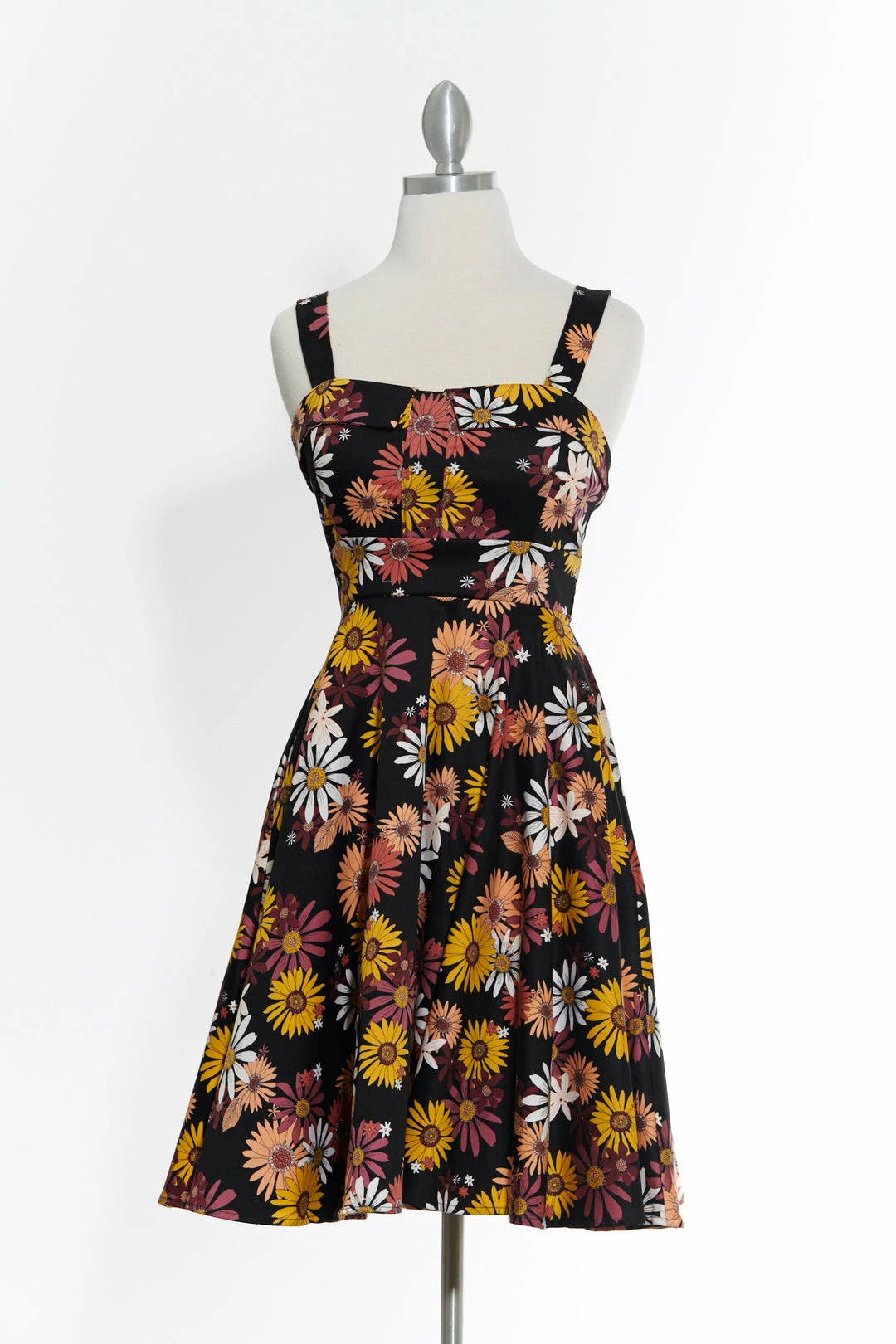 Keep smiling because life is a beautiful thing’ and so is this classic pinup style dress. This cute black and floral print dress has thick straps for an extra bit of support atop the fitted bodice that culminates into an adorable rounded skirt. The Marilyn dress ties in the back to fit to all of our beautiful body types. This dress is versatile just like the modern woman – wear it to work or wear it to play!