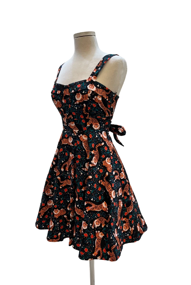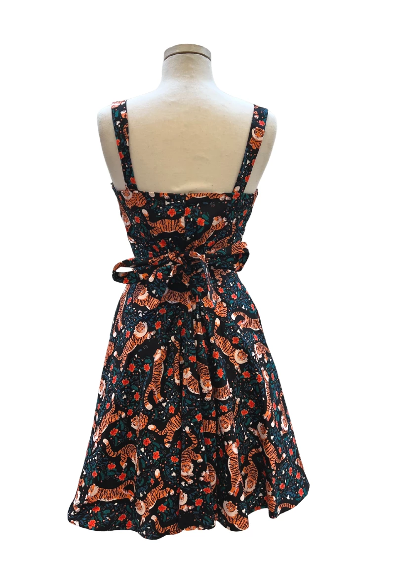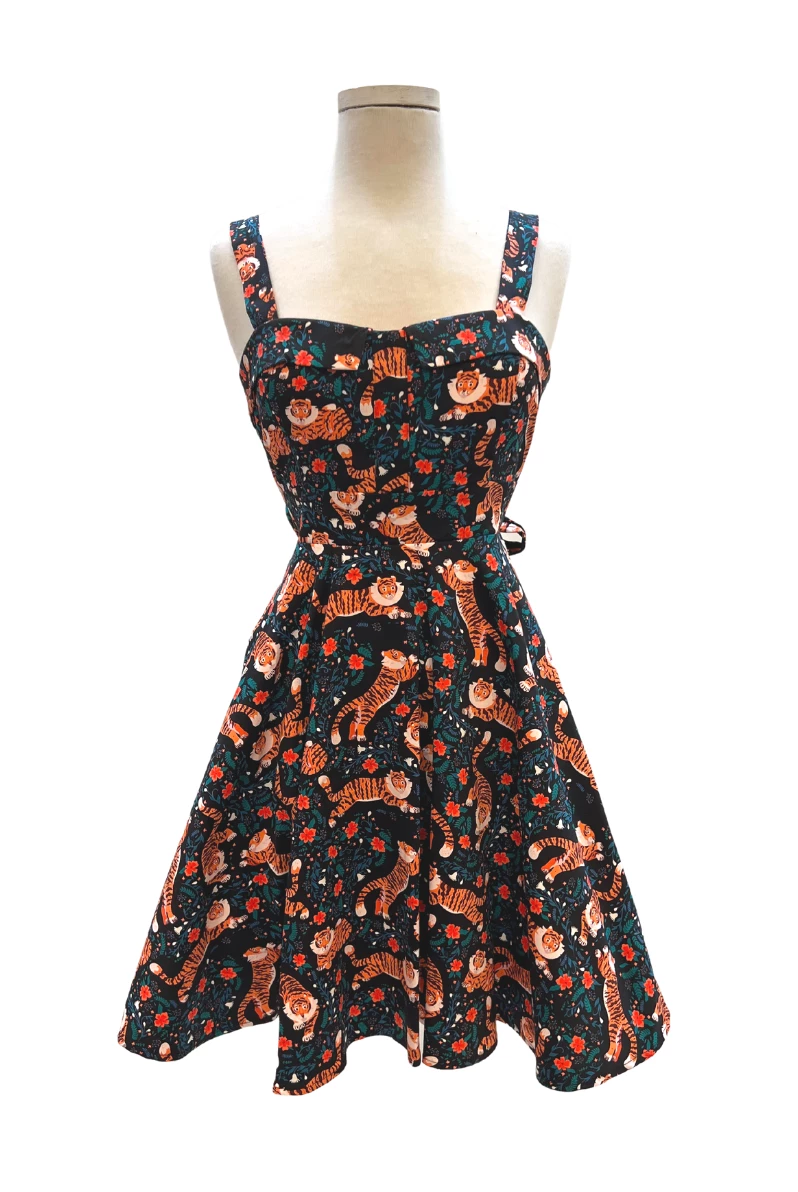 Keep smiling because life is a beautiful thing’ and so is this classic pinup style dress. This cute tiger print dress has thick straps for an extra bit of support atop the fitted bodice that culminates into an adorable rounded skirt. The Missy dress ties in the back to fit to all of our beautiful body types. This dress is versatile just like the modern woman – wear it to work or wear it to play!
