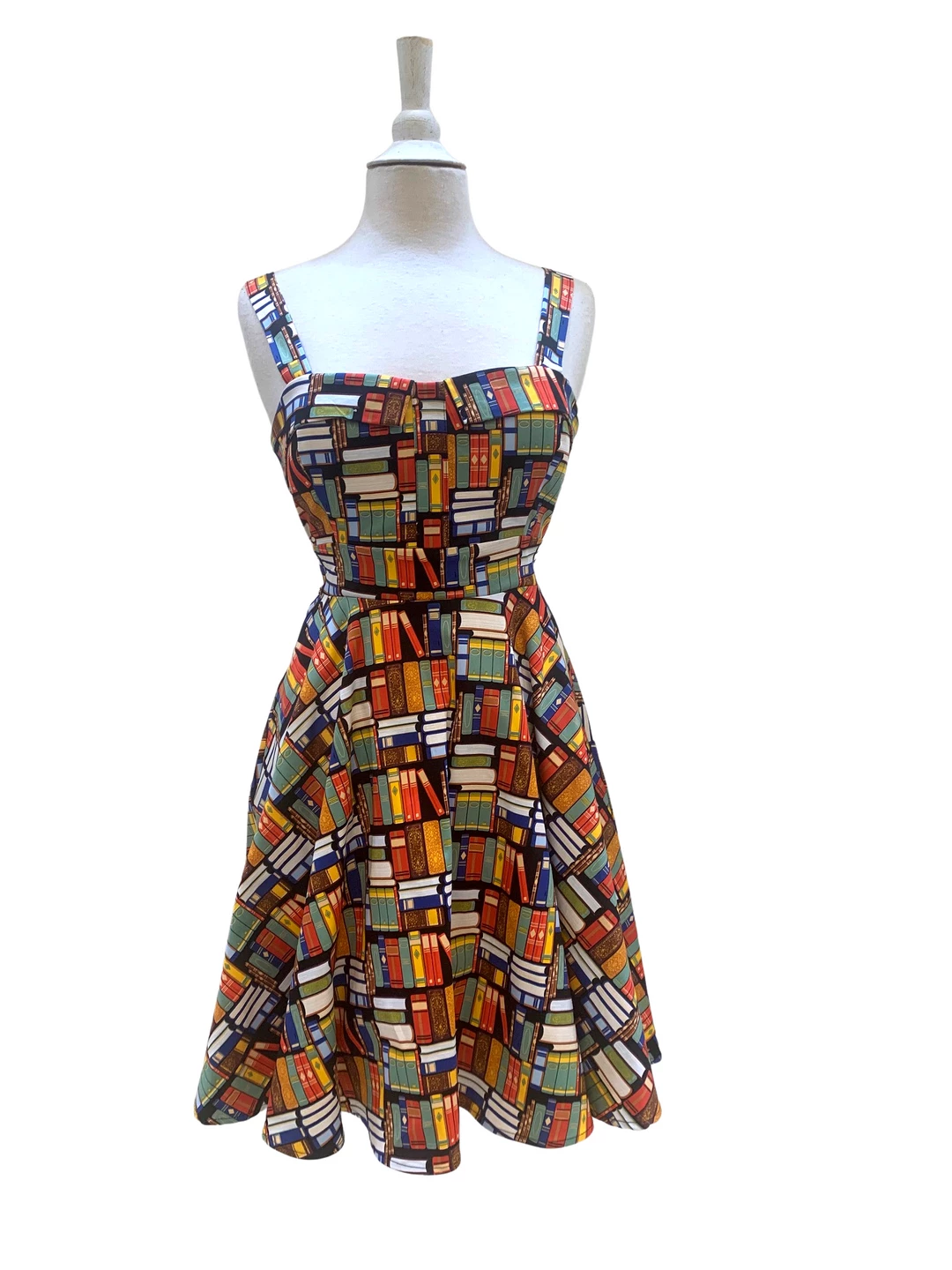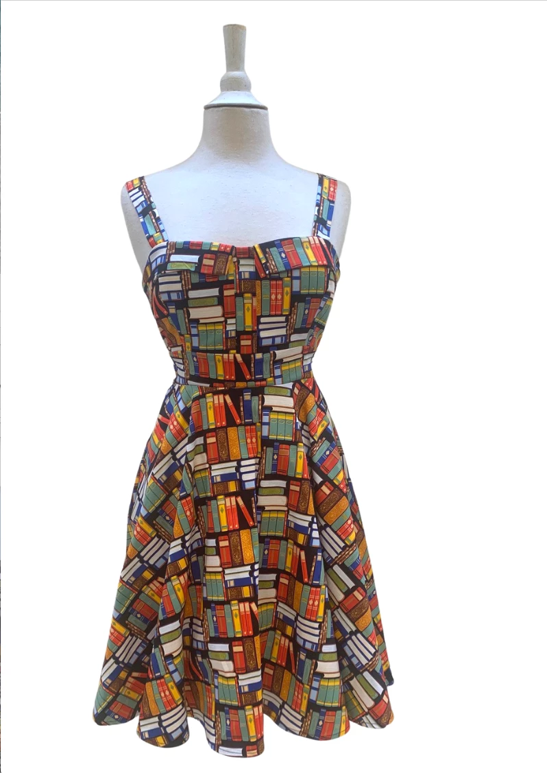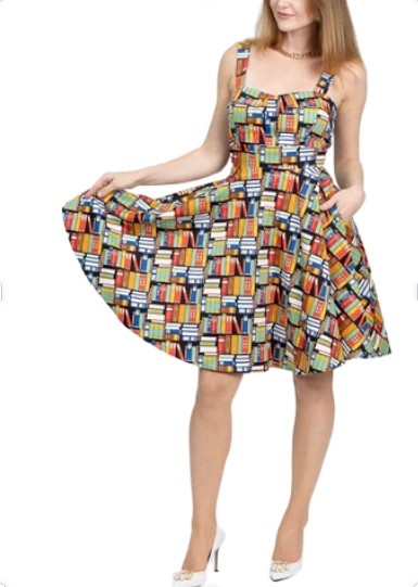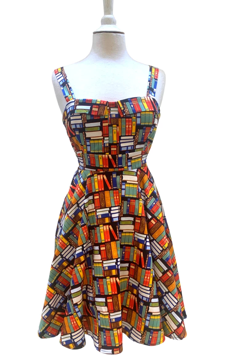 Keep smiling because life is a beautiful thing’ and so is this classic pinup style dress. This cute book print dress has thick straps for an extra bit of support atop the fitted bodice that culminates into an adorable rounded skirt. The Missy dress ties in the back to fit to all of our beautiful body types. This dress is versatile just like the modern woman – wear it to work or wear it to play!