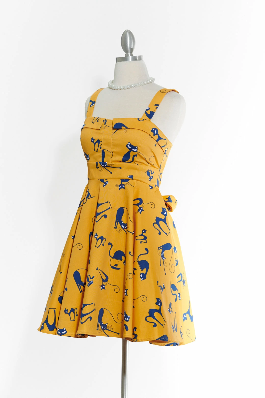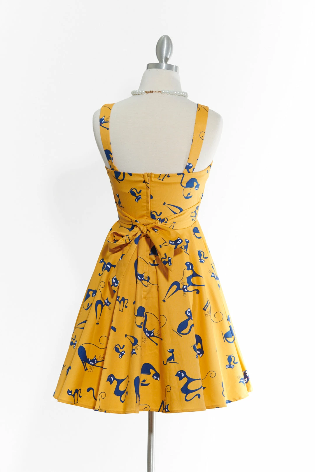 Keep smiling because life is a beautiful thing’ and so is this classic pinup style dress. This cute yellow with print dress has thick straps for an extra bit of support atop the fitted bodice that culminates into an adorable rounded skirt. The Marilyn dress ties in the back to fit to all of our beautiful body types. This dress is versatile just like the modern woman – wear it to work or wear it to play!