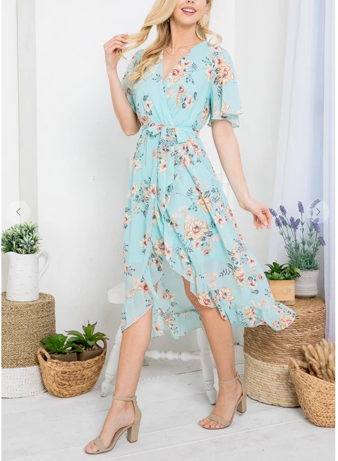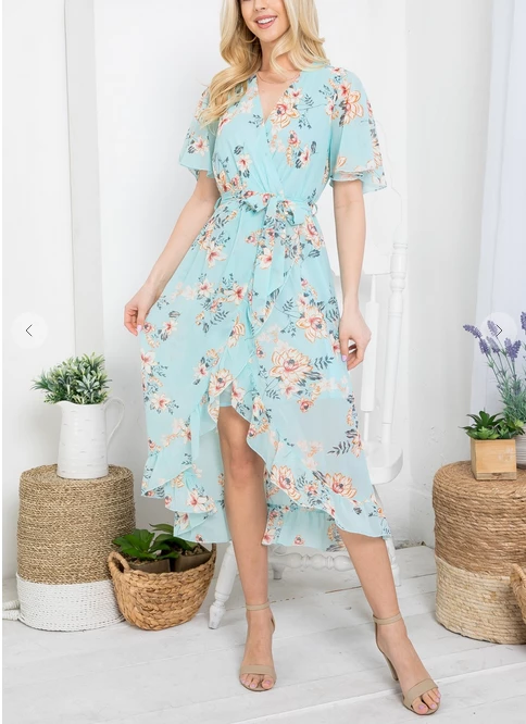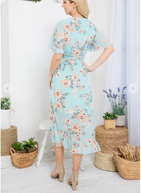 LA SOUL Day Dreaming Cyan Floral Dress