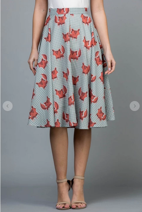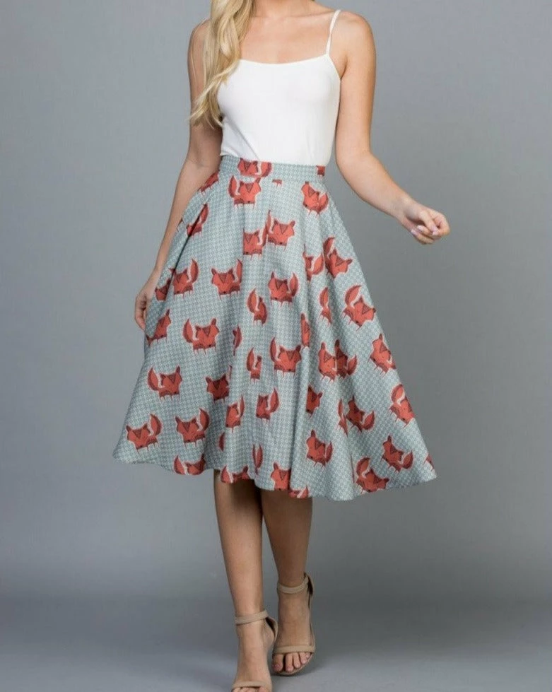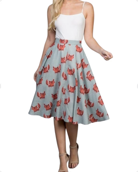 A sweet silhouette, darling! Crafted in a fabulous light weight material, this adorable fit and flare skirt features a clever print throughout for those who still believe in magic.