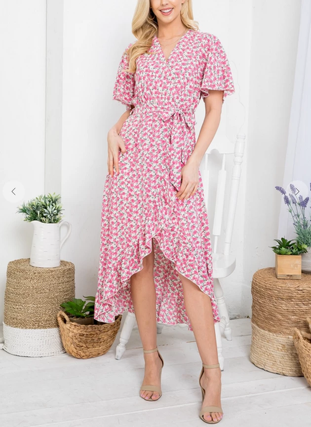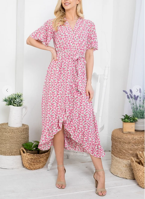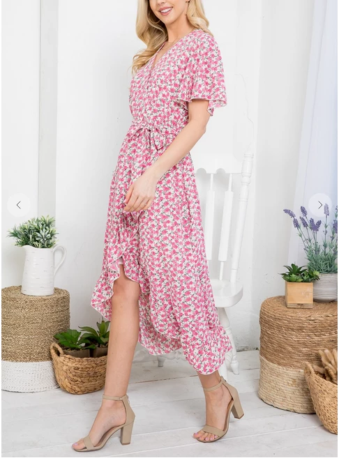 and comfortable featuring a ruffle hem and it also has a tie waist.