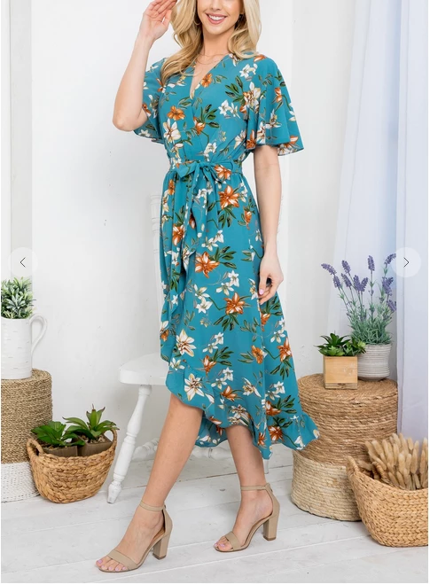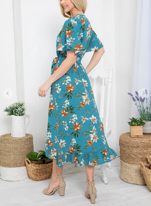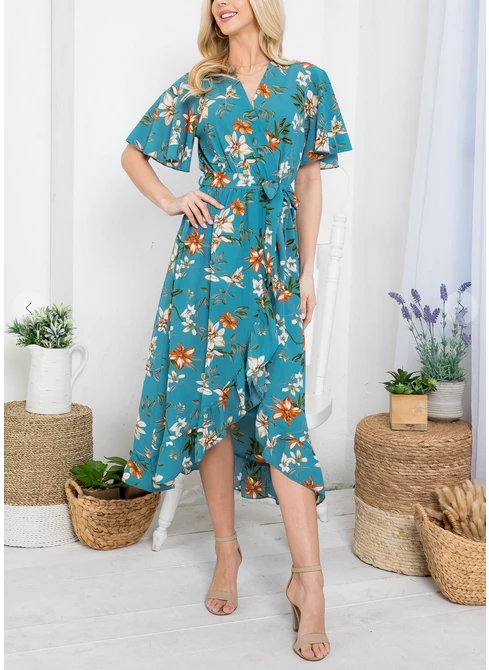 LA SOUL Printed Dresses Day Dreaming Sea Green Floral Dress