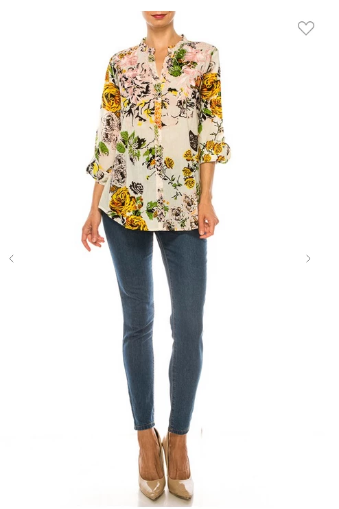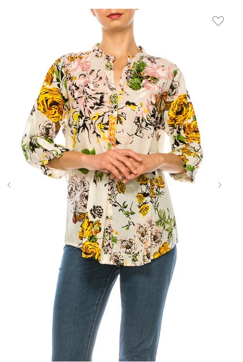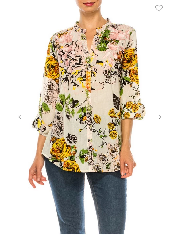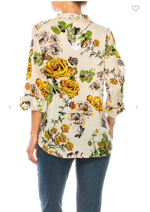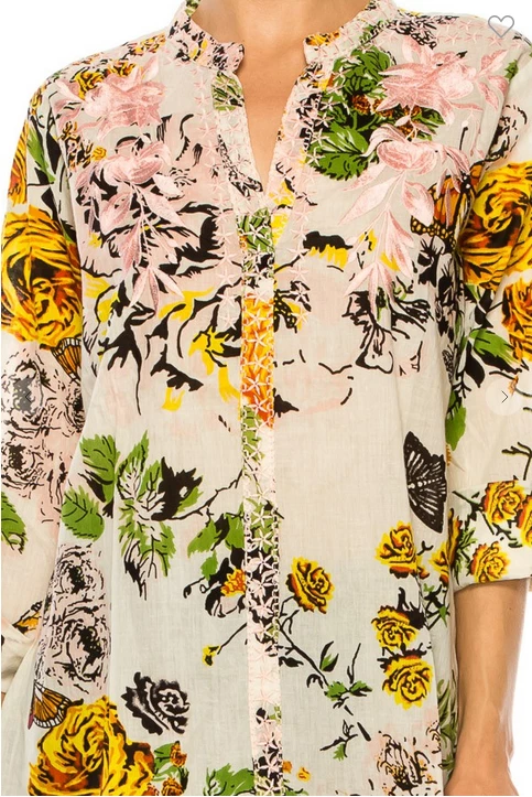 Magazine Long Sleeve Top Love Floral Ivory Button Down Top