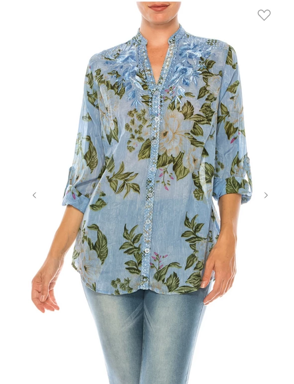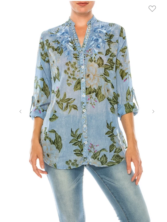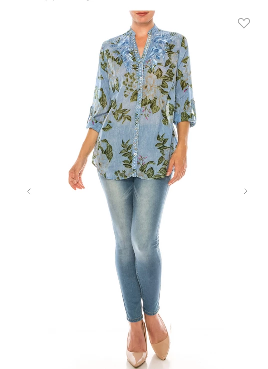 This darling floral blouse is such a must-have for summer fun! We love the gorgeous print in red, blue, pink and white – it’s so vibrant and fun!