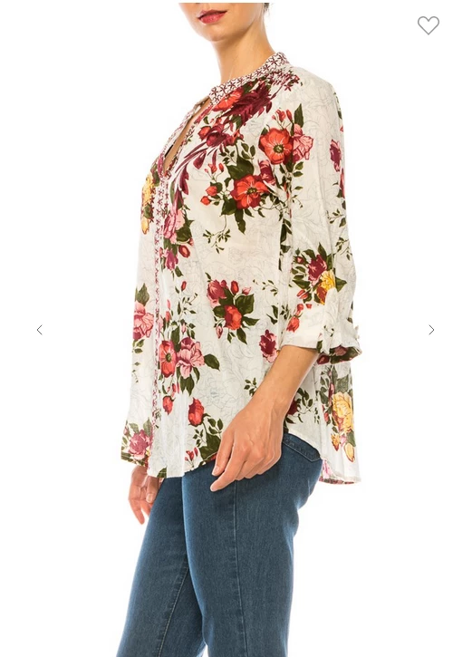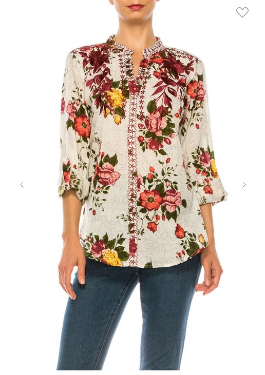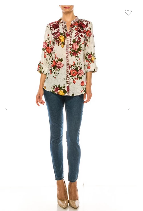 This darling floral blouse is such a must-have for summer fun! We love the gorgeous print in red, blue, pink and white – it’s so vibrant and fun!