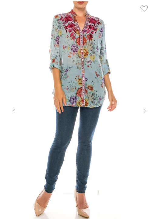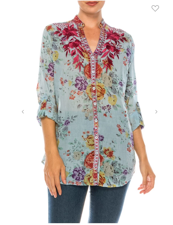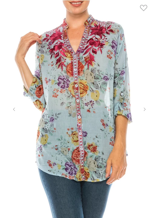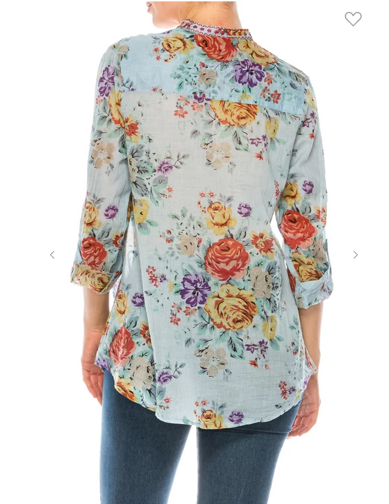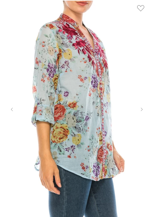 This darling floral blouse is such a must-have for summer fun! We love the gorgeous print in red, blue, pink and white – it’s so vibrant and fun!