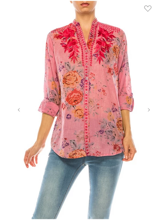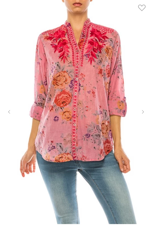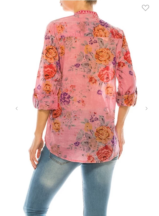 This darling floral blouse is such a must-have for summer fun! We love the gorgeous print in red, blue, pink and white – it’s so vibrant and fun!