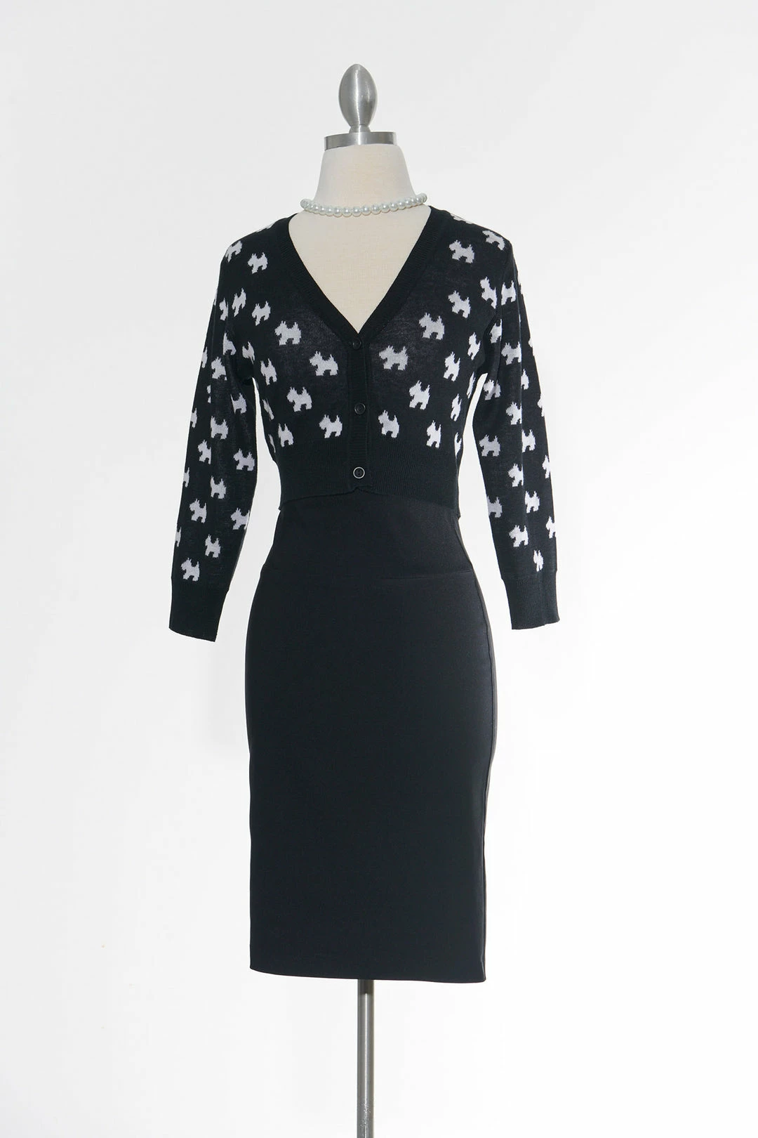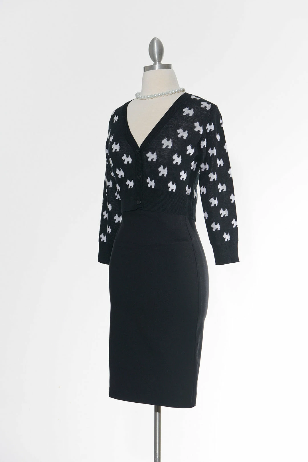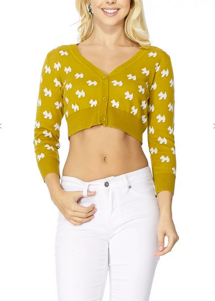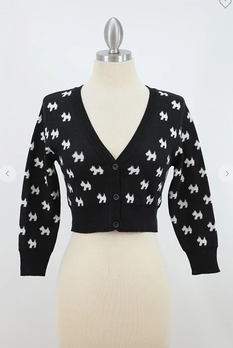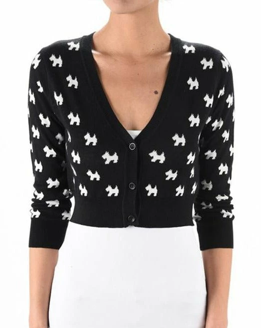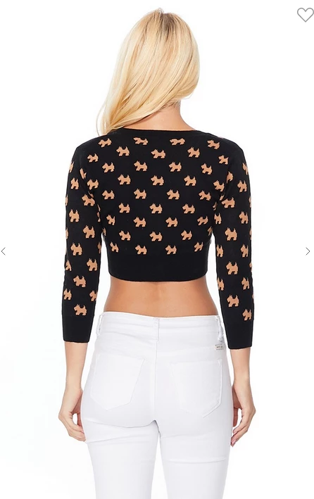 SKU: top-6117268619437 Categories: Sweaters & Cardigans, Top Styles, Tops Tags: Black sweater, BOLERO, Crop sweater, Cute sweater, Scotty sweater, Tan sweater