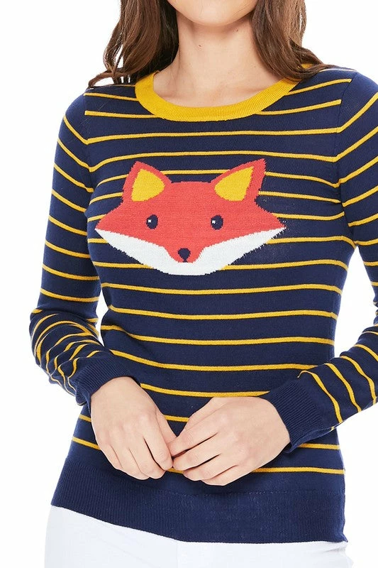long sleeve stripe top with an adorable fox face print.