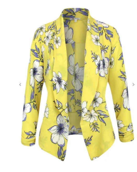 For the women who dresses for comfort and style this blazer is for you. Featuring a draped front, quarter sleeve, and semi- cropped fit at back. Wear with jeans and a tee shirt for a more cute- casual look or layer over a simple day dress for more style and detail.