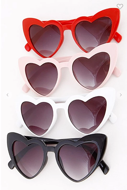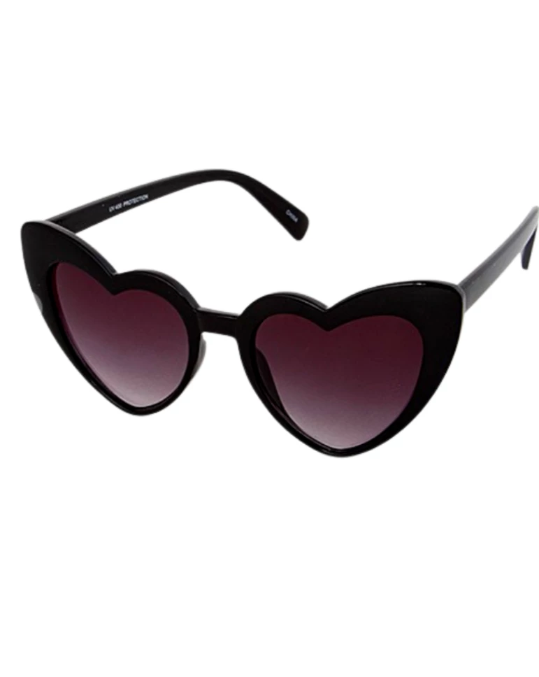 Feeling some type of way, grab the heart sunnies. The cutesy black shades feature a heart shaped frame with grey lenses.