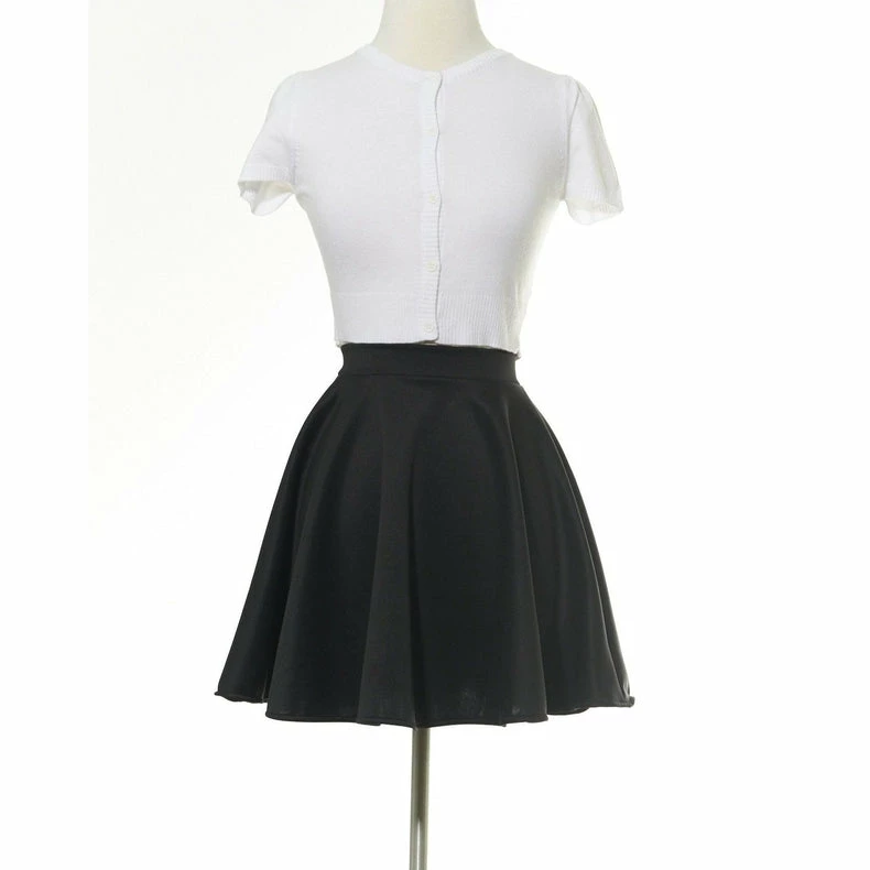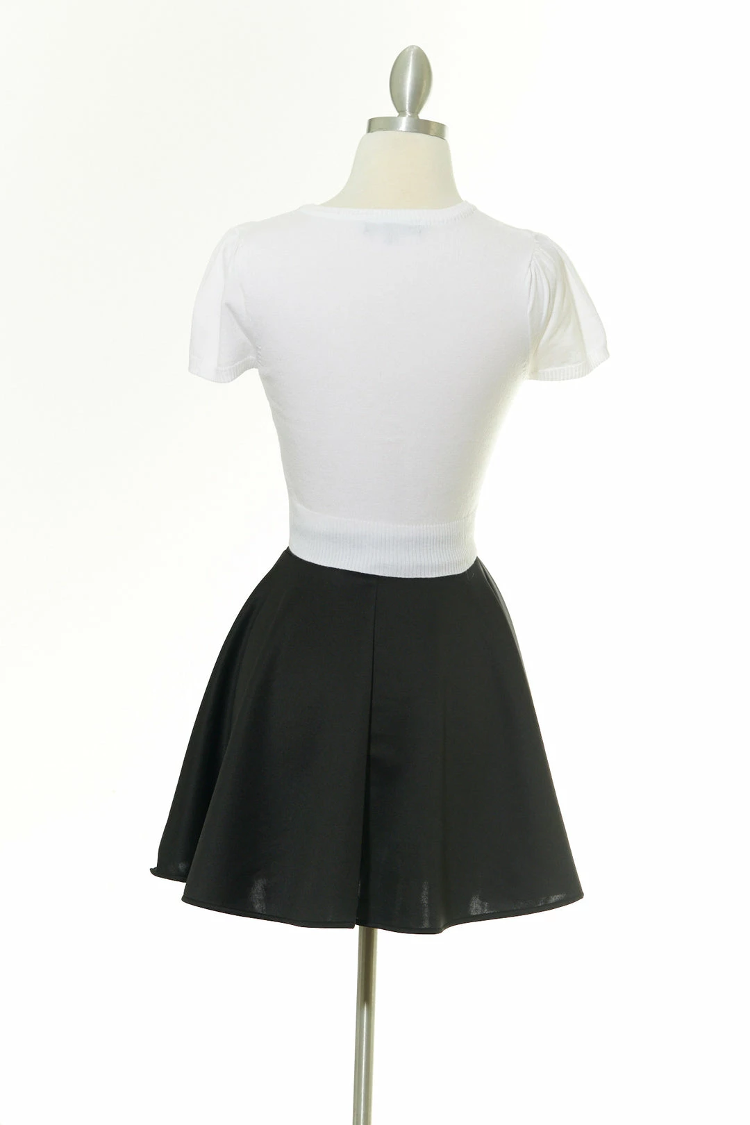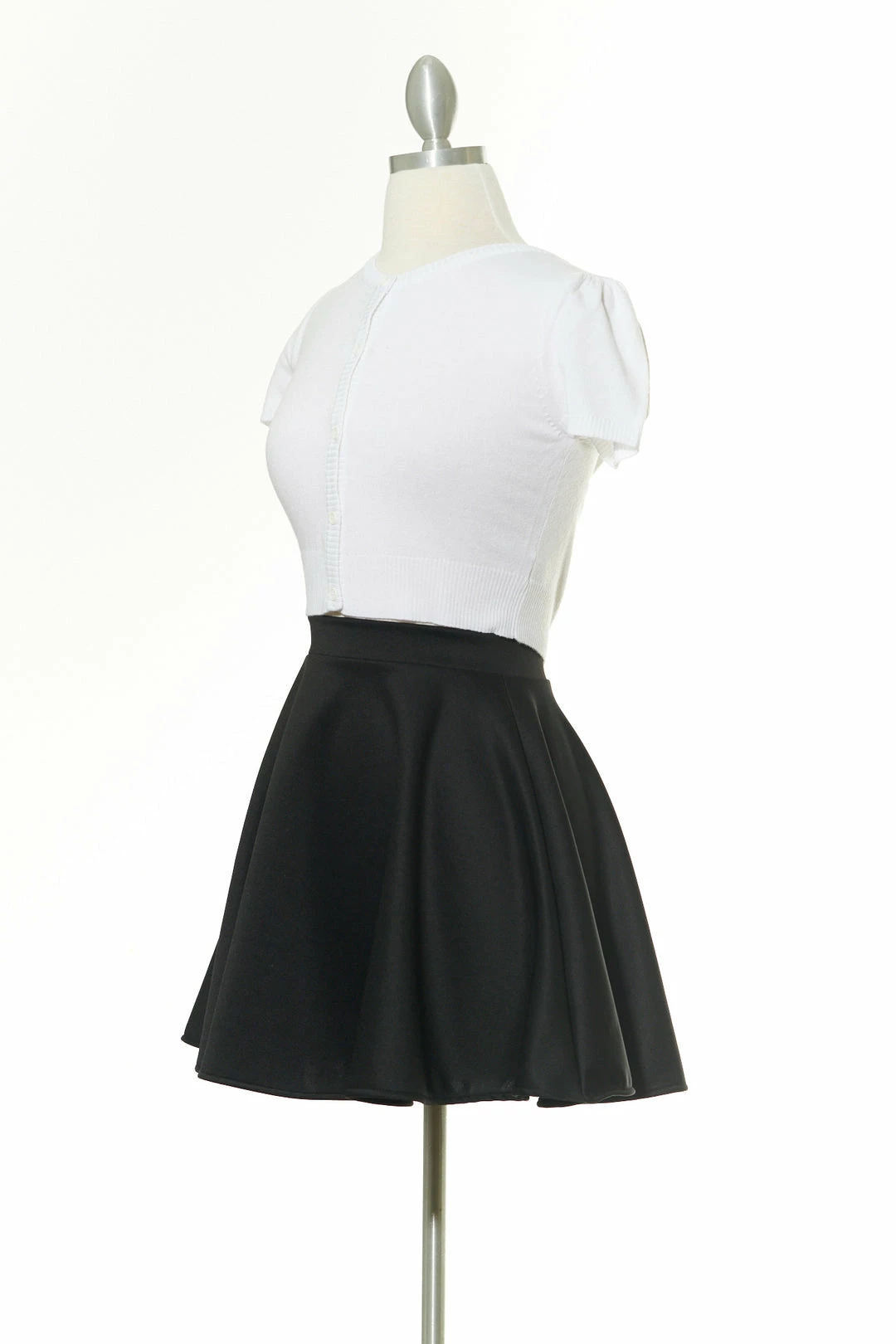 A retro classic that pairs perfectly with modern ensembles. This soft and stretchy white cardigan features a cropped design that combines with a scoop neck, short cap sleeves and a button row up front to create a prim and polished look.