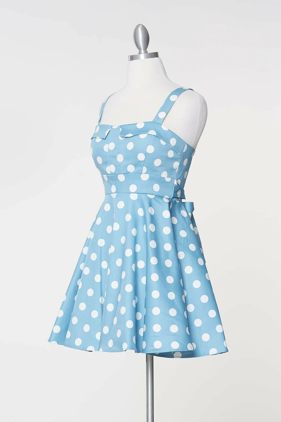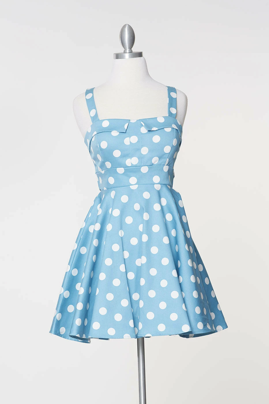 ‘Keep smiling because life is a beautiful thing’ and so is this classic pinup style dress. This cute sky blue and white polka dot dress has thick straps for an extra bit of support atop the fitted bodice that culminates into an adorable rounded skirt. The Marilyn dress ties in the back to fit to all of our beautiful body types. This dress is versatile just like the modern woman – wear it to work or wear it to play!