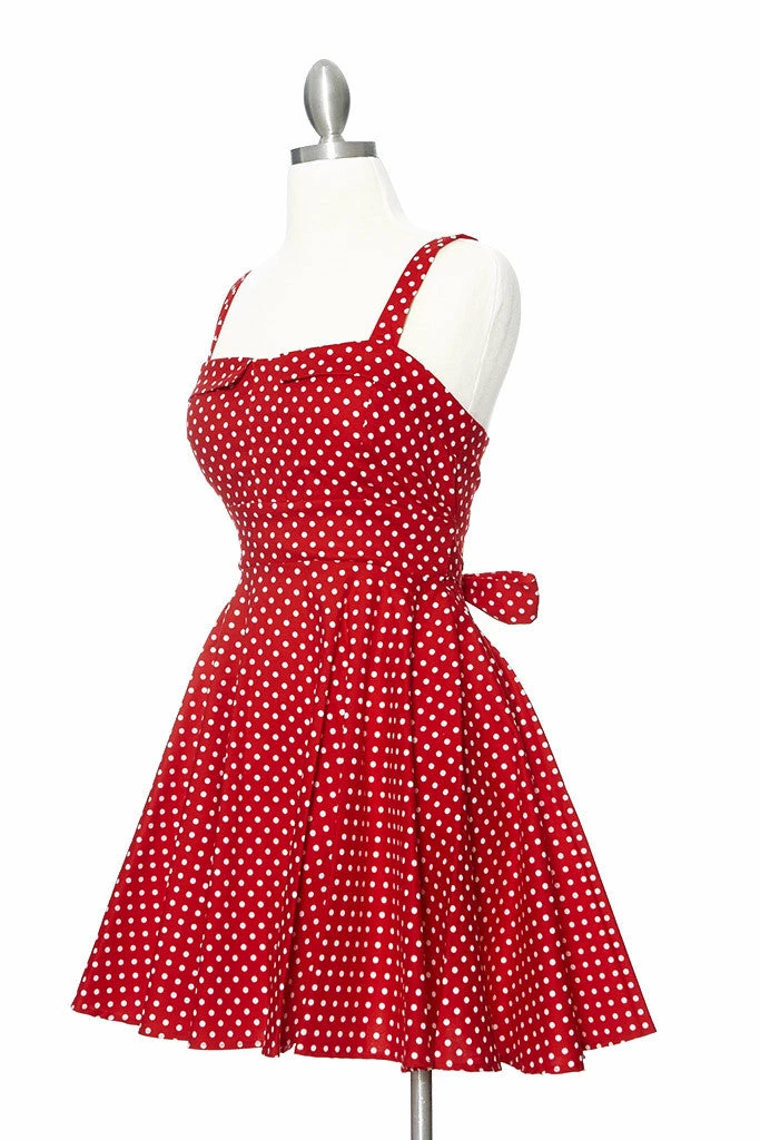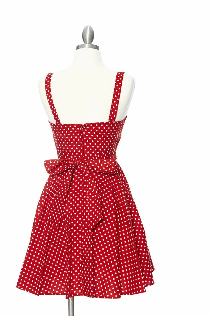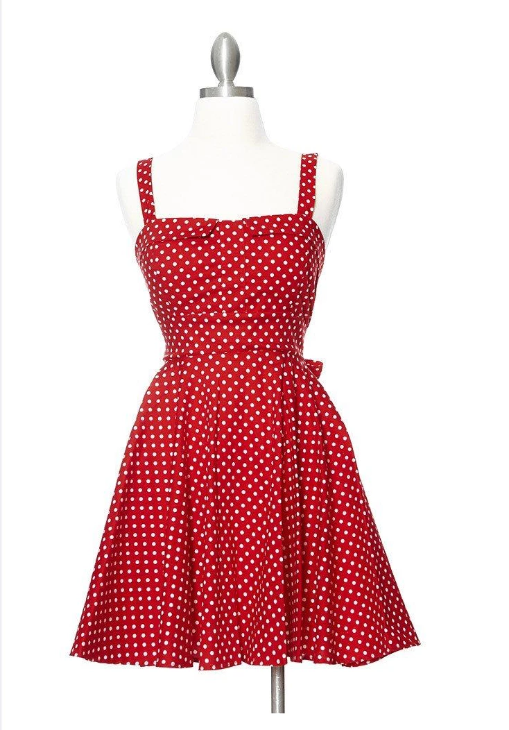 ‘Keep smiling because life is a beautiful thing’ and so is this classic pinup style dress. This cute red & white polka dot dress has thick straps for an extra bit of support atop the fitted bodice that culminates into an adorable rounded skirt. The Marilyn dress ties in the back to fit to all of our beautiful body types. This dress is versatile just like the modern woman – wear it to work or wear it to play!