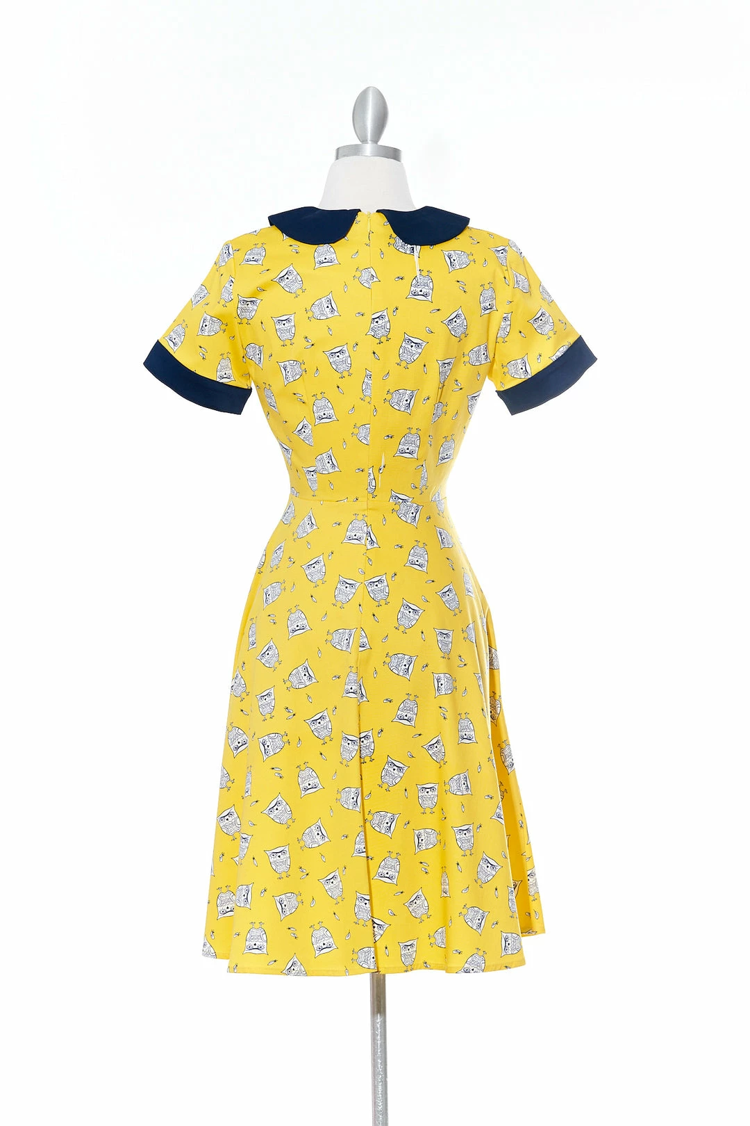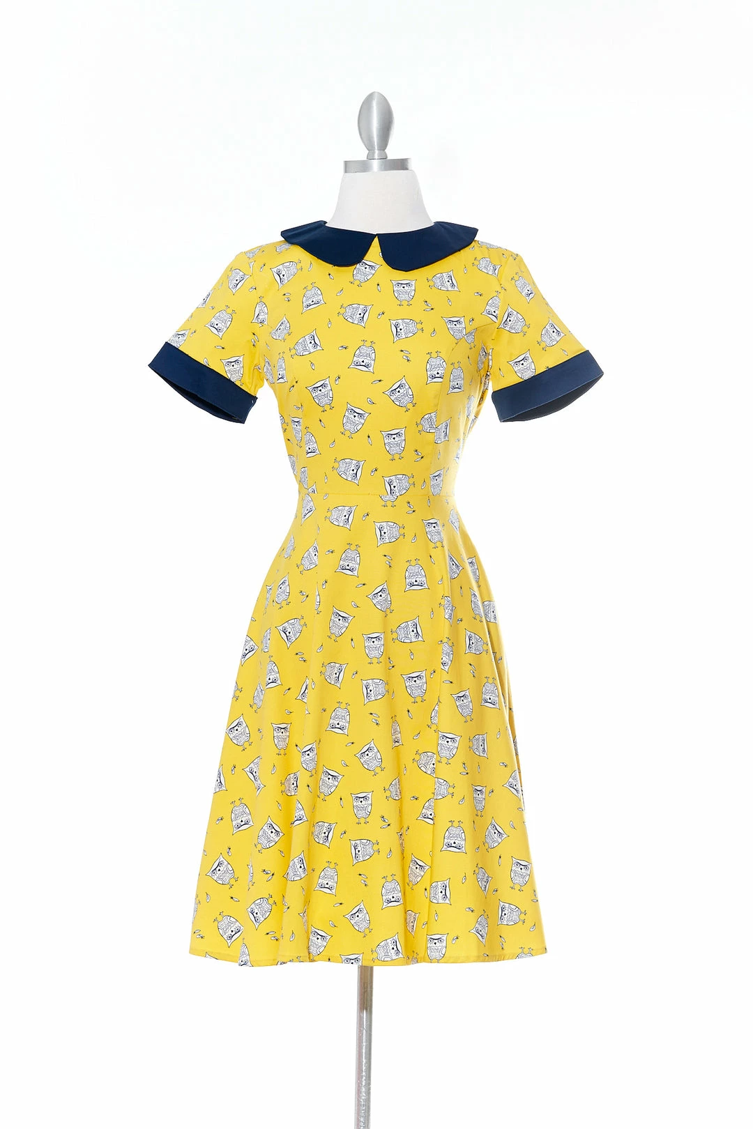 A delightful shirt dress features a print and a midi-length hem. The dress features school uniform collar and provides an A-line skirt finish. This dress is a great addition to wear any day when out in the city.