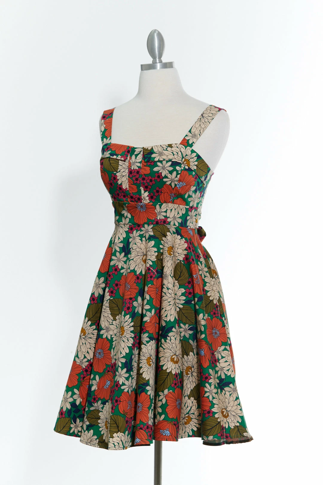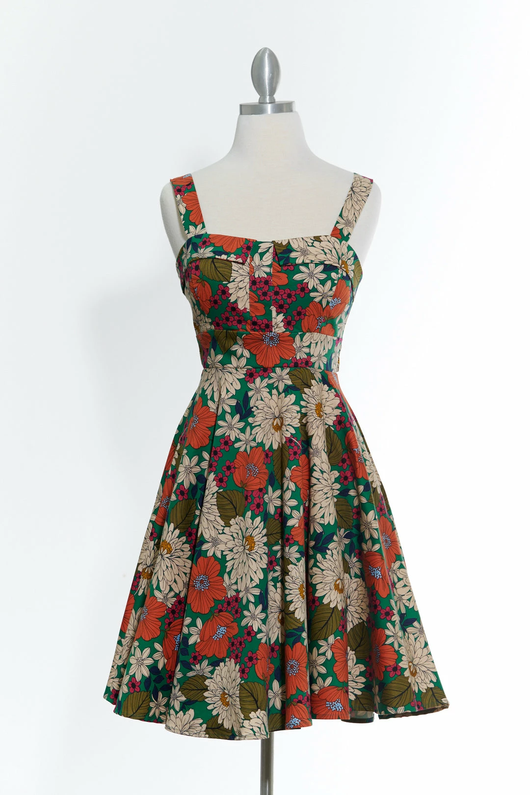 Keep smiling because life is a beautiful thing’ and so is this classic pinup style dress. This cute green floral dress has thick straps for an extra bit of support atop the fitted bodice that culminates into an adorable rounded skirt. The Marilyn dress ties in the back to fit to all of our beautiful body types. This dress is versatile just like the modern woman – wear it to work or wear it to play!
